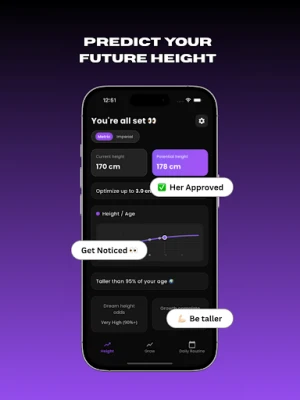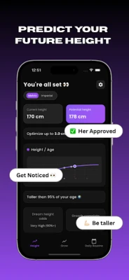 AI-powered insights forecast your future height and track your current progress with smart visualisations.