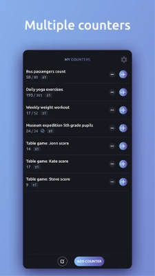 - Multi-Counter Functionality: Create multiple counters for various tasks and switch between them effortlessly.