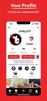 Tally It is the ultimate video-based social network for U.S. Crypto enthusiasts, now revolutionized with Tally Coin ($TALLY) to empower a community centered on growth, connection, and wealth-building. On Tally It, discover short-form videos that capture and promote new Coins and Projects for everyone to see. The app aims to work like Dex Screener, providing a platform for people to view different projects through UGC Crypto videos and to spread awareness of the next big coins. The more you use and engage with the app, the more in-game points you receive, placing you higher on leaderboards for all users to see and unlock FREE rewards in the Tally It Marketplace, even FREE SOLANA.