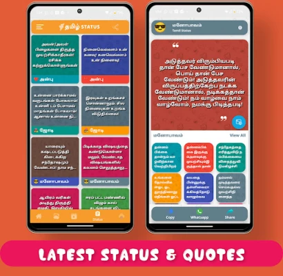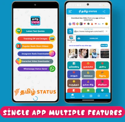Tamil Status 2024 isn't just an app; it's your complete status hub. From video downloads to text quotes and trending content, discover everything in one place.