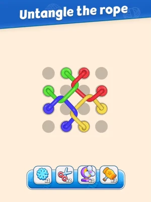 - Drag ropes to move and place them correctly to untangle the knots