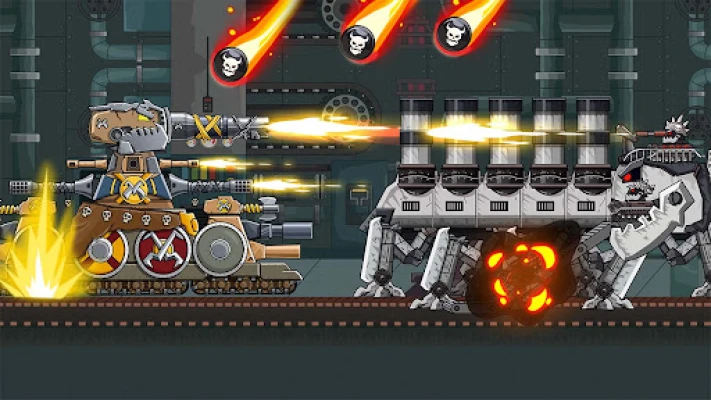 Get ready for an epic battle in steel battlegrounds, the ultimate 3v3 tank battle arena game! Choose your tank and join the fight against metal robots in a 2D simulation game. Defeat enemies in various game modes including battling 1v1, 3v3 tank battle arena, 4v4, and 5v5 PvP tank battles, story mode, and versus mode, free-to-play mode, 2 players mode, brawl with iron. You can also team up with friends for an epic tank team battle!
