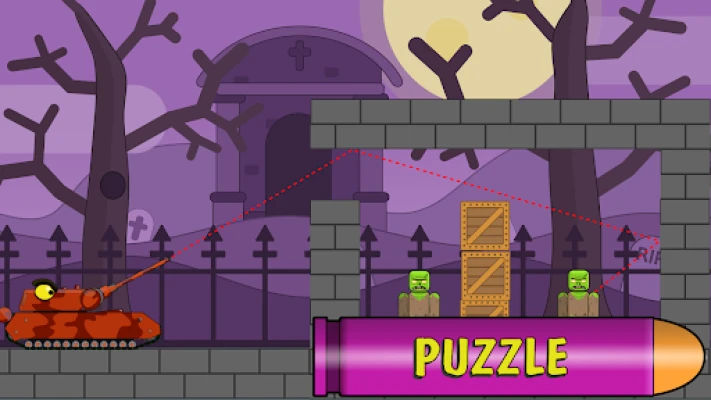 TANK BATTLE Use the full potential of your brain and the bullet echo to protect the whole world from the invasion of zombies. This is a real war against bosses and their minions using cannons and well-aimed shots. The battle takes place in different locations, you have to clear the cemetery, the black forest and the city!