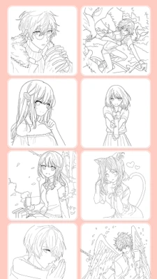 Tons of pictures including anime and manga character, fashion, flowers, mandala, unicorns, animal etc😊.