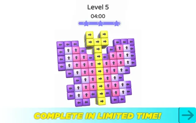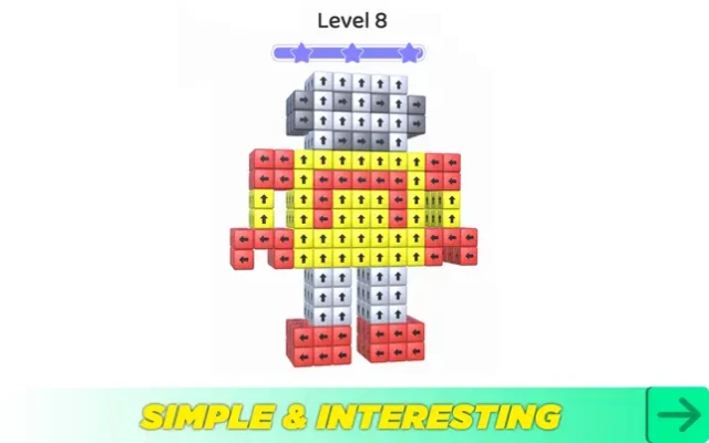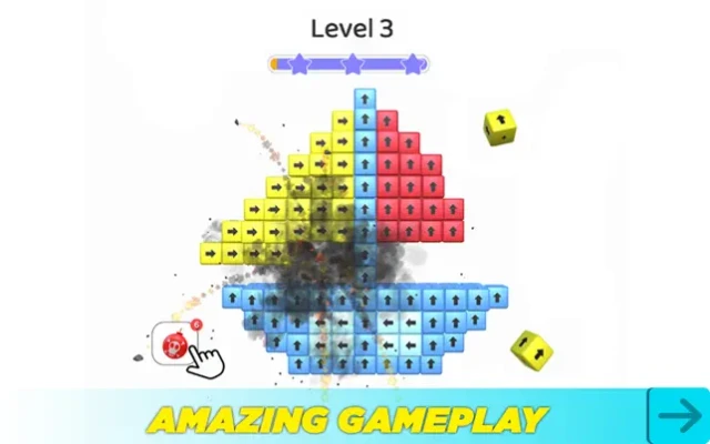 This tap away 3D puzzle game indicates the directions, you will tap-tap the blocks to clear them out. But the bricks of cubes will move in only one direction. Some blocks are locked by another block in out trivia, therefore, you have to choose the block carefully to tapy the blockout from a cube. Tap-tap blocks will bring you takeaway to the next IQ level.