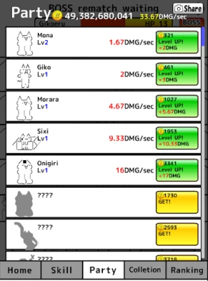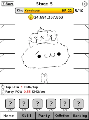 Ascii art cat's idle and tapping RPG.