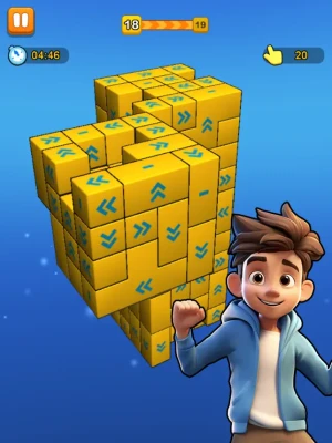 Many blocks with arrows are grouped together. You need to untangle them by clicking on the blocks to make them fly off the screen. Clear all the blocks to pass the level. However, the blocks will only fly in the direction of the arrows, so you must move them in a coordinated manner to avoid getting stuck! Use your finger to swipe the screen and rotate the cube, changing the perspective to eliminate blocks from different angles. As the game progresses, the blocks will form larger and more complex structures, posing a greater challenge. You need to think outside the box, plan your moves strategically, and solve these tricky levels.