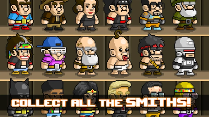 Collect over 65 crazy Smith characters, like Agent Smith, Bat Smith and Dark Lord of the Smith, including rare Smythical characters with unique abilities! Challenge your reflexes and your memory as you master new blueprints to craft! Fast, reflex-based arcade action meets collectible cartoon craziness and roleplaying-style upgrades!