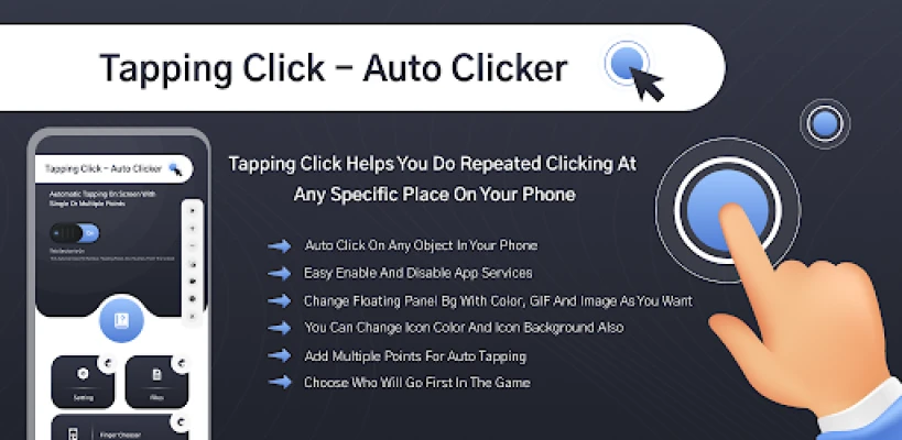 Easily you can do repeated clicking at any specific place on your phone with customizable floating panel style.