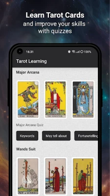Learn tarot card meanings with a tarot quiz. Build strong bounds with the energy of tarot using a simple yet powerful way of learning by answering quiz questions. The app contains meanings for every popular type of tarot reading, so everything is also included in a quiz.