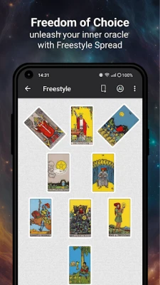 Get tarot reading and learn cards with freestyle layout. Do not block imagination to predefined spreads! Unrestricted freedom for you in the tarot world. Use the tarot spreads you want, or create your own.