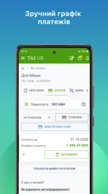 Саме тут, у вас є можливість ознайомитись з інформацією по власному полісу страхування життя, керувати його налаштуваннями, своєчасно та легко оплачувати чергові внески.