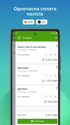 Зручний графік оплат та можливість вибору договорів та кількості платежів, одночасна оплата за декількома договорами страхування