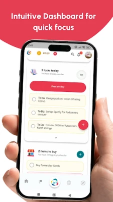• Switch between Focus Modes: Personal Life, Work, Financials, or Wellness
