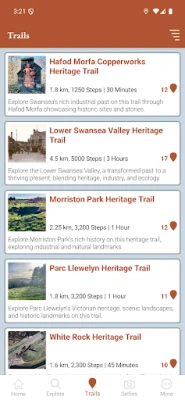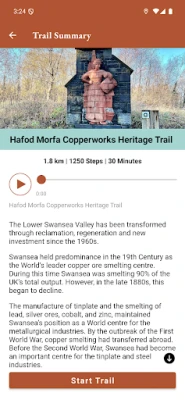 Free App! Discover the natural beauty and heritage of Swansea through our featured trails and heritage sites on this App. Available in both Welsh and English audio versions. Choose between on screen text or listen as you walk! Using GPS, track your journey through exploring our 6 unique featured trails such as; Hafod Morfa Copperworks, White Rock, Parc Llewelyn, Clydach Canal, Morriston Park and Lower Swansea Valley! Experience scenic views, interesting heritage, history and more! Go outside and start exploring! What will you discover along your way?