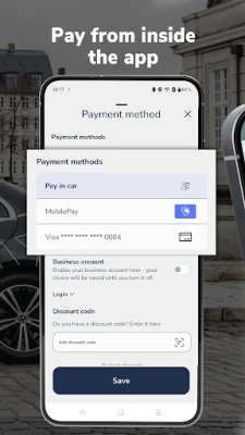 We recommend payment from inside the app using a credit card or MobilePay. This enables you to get straight on with your everyday when arriving to your destination, instead of waiting for credit card terminals inside the car. As an alternative, you may also choose to pay inside the car by Apple Pay, Google Pay or with cash.