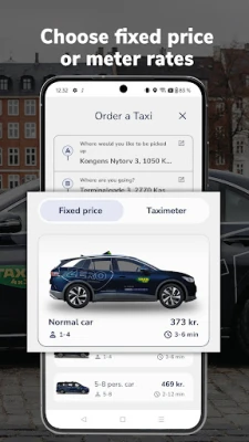 Insert a pickup and a destination address to get a fixed price offer instantly. You may then choose whether to book at a fixed price or to drive on meter rates.