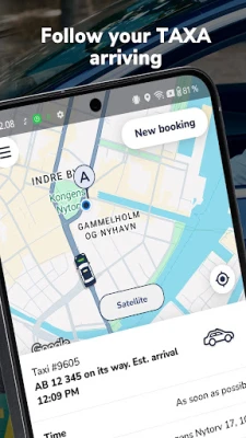 - Follow your taxi approaching while you wait