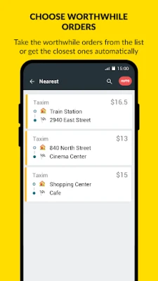 Filter orders by rate and destination to select the most suitable orders for you from the list. Alternatively, you can enable a mode in which our service offers you the nearest orders automatically, allowing you to complete them one by one. This lets you earn more while spending less time and fuel.