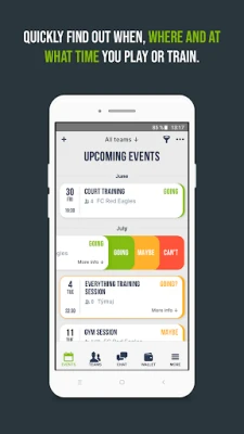 If you are a coach or manager, you can easily plan events and invite players or teammates directly from your mobile.