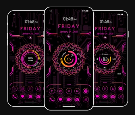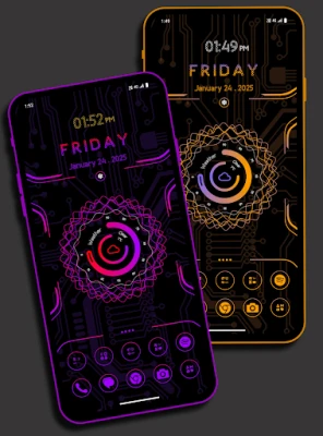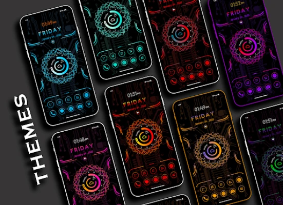 Dive into the world of dynamic hi-tech wallpapers that adapt to your chosen theme. Adjust color transparency to your preference and even use images from your personal gallery to personalize your home screen.