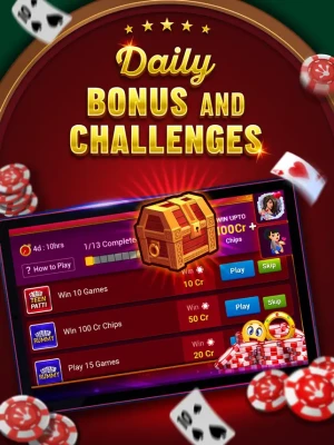 You can play your favourite Teen Patti Game in English, Hindi, Gujarati, Marathi, Telugu, Urdu and Bangla.