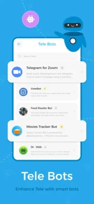 Access a wide variety of Tele Bots that help with productivity, automation, and entertainment. From bots that generate AI responses to ones that help schedule messages, this feature enhances how you interact on Tele.