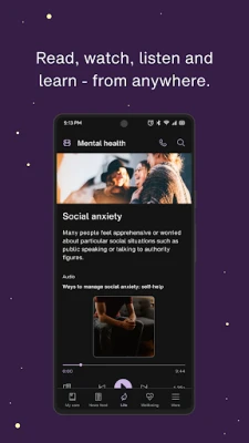 • Available on this app, TELUS Health EAP gives you access to 24/7 support for mental health care and for other areas of your personal and professional life, including legal and financial assistance, child and elder care, career services, nutrition services, and more.