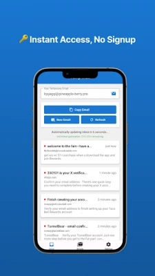 1. Tap to Generate: Instantly create a fresh, temporary email address.