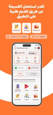 مع تم تم، اشري واش تحب! تقدر تستعمل قسيمة شراء تم تم على التطبيق، تطلب مختلف المنتجات : مواد غذائية، لحوم، خضر و فواكه، أطباق جاهزة، حلويات و حتى الأجهزة الكهرومنزلية و الملابس و تدفع بقسيمة الشراء تم تم للإستفادة من توصيل لباب الدار على 58 ولاية! تشري مباشرة عند واحد من المحلات الشريكة لتم تم : كيابي، كاردينال، كازيو... المتواجدة في مختلف الولايات و تدفع باستعمال قسيمة الشراء تم تم و خاصية Code QR ! تقدر كذلك تستعمل القسيمة لتعبئة رصيدك النقال (جيزي، موبيليس، أوريدو) و الأنترنيت (إيدوم) ، دفع الفواتير و مختلف الإشتراكات (نتفليكس، سبوتيفاي...)، حجز تذاكر السفر و حتى مكان الإقامة بكل سهولة !