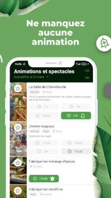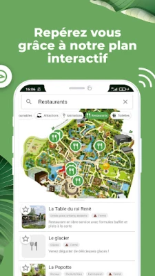 Vous trouverez également la liste des restaurants ainsi que toutes les animations du jour et leurs horaires. Vous pourrez également mettre en place des rappels pour ne rien rater de votre visite !