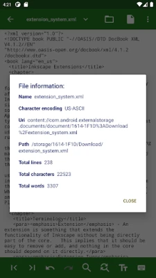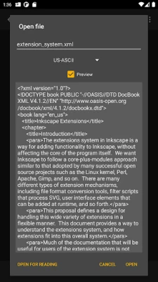 - Create, modify and save files to the device’s memory and removable storage (txt, xml, html, css, svg files...)