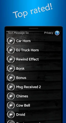 Text Message Sounds is a collection of notification sounds for text messages perfect for text message ringtones, email alerts and notification tones. Easily set any sound as your notification for text messages, ringtone, alarm or to a person. You can also use them as your ringtone.