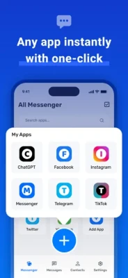 *Messenger All - Dual Messaging* is the ultimate solution for integrating multiple social media platforms into one seamless experience. Save valuable phone storage space and run multiple accounts for the same platform on a single device, making it ideal for balancing personal and professional interactions.