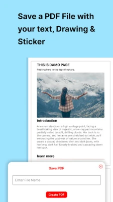 Getting started is as simple as tapping 'Create PDF', where one can draft notes using a variety of customization options including text formatting, headings, font styles, sizes, and background colors. For a more personalized touch, the utility allows the inclusion of drawings, stickers, and photos within the document. Once the content is complete, a user can name their PDF file and easily locate it from the home screen for quick access.
