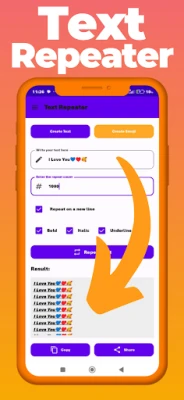 Text Repeater allows you to duplicate text instantly, saving you time and effort. Whether you need to repeat thousands of messages or lines of text, this tool makes it fast and easy.