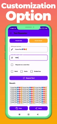 6- Tap "Generate" to get your repeated text instantly.