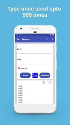 Text Repeater is the ultimate text repeater app for WhatsApp and other messaging platforms, designed to repeat text and emojis effortlessly. Whether you're looking for a message repeater for fun or need a text bomber for practical use, this app has you covered. With Text Repeater, you can easily repeat text or emojis up to 10,000 times with just a click.
