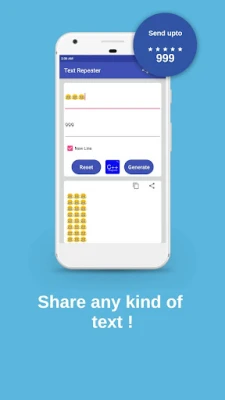 Copy and Share Repeated Text: Quickly copy repeated text to your clipboard or share text directly from the app. You can even send blank messages or empty messages.
