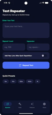 1. Text Repeater — Repeat any text up to 10,000 times with a custom separator