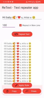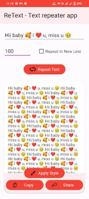 This app lets you repeat your short texts into very long messages and then you can apply styles also to your text to make it beautiful and impressive.