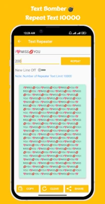 When you need to repeat text, Text Bomber is a superior solution. Text, emoticons, and other formatting are supported by Text Repeater. With this text spammer, you may make a special text for your bombing messages and have fun. For young boys and girls who frequently text each other, this text bomber is more entertaining. Due to the numerous functionalities offered by our Text Repeater, writing is no longer necessary. These are some of the Text Repeater App's key advantages.