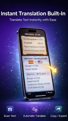 🌍 Built-in Text Translator Overcome language barriers with ease. Once you use the OCR text scanner to grab text, instantly translate it into your desired language right within the app. Perfect for travel, menus, and foreign documents!