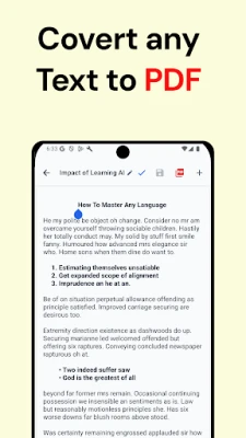Download this text to pdf converter app today and start creating professional PDF documents in seconds! Transform any text, note, or written content into shareable pdf files with ease.