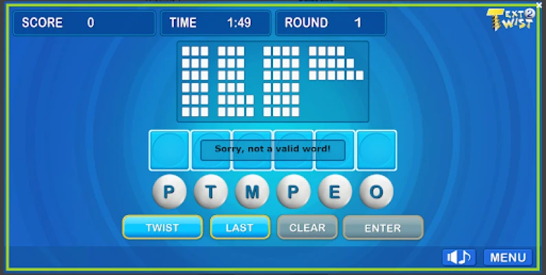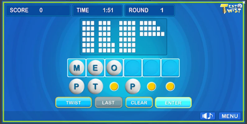 Play the second installment of the text twist word game series. The most important thing in this game is making as many words as you can. For example, there are letters displayed on the screen A R C T U O, the player will have to create as many words as possible among these letters. Some words might be CAR, and TOUR, etc..