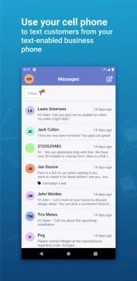 Now with this phone app now you have access to those key features from your cell phone as well and all text communications will be sent using your business number so you never reveal your personal cell phone number again. You have access to your business contacts on the go so you can quickly and easily text your customers while seeing previous text conversations too and you can filter customers using tags making it even more convenient.
