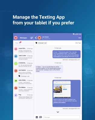 • Includes more than just SMS – include logos and pictures, send links for setting appointments, attach product images, etc.