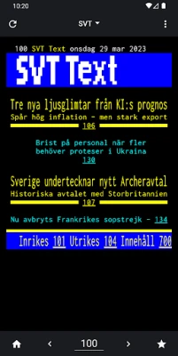Use: Change page by entering a number or navigate with the arrows. It is also possible to navigate by swiping left or right. Pull down to refresh. Switch channel from the menu at bottom right (three dots).