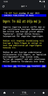 Content is fetched directly from official web versions of teletext. Text can be displayed in a real computer font for better readability.