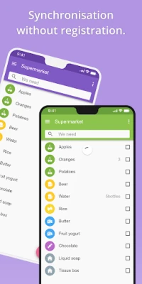 Working through your shopping list is even easier. Thanks to the unique, clear, categorized display and sorting functions, you will be able to complete your shopping in no time at all. With the help of syncing, you can even work with other people or devices on the same shopping list with as many lists as you want. Ideal when shopping together, for example, for couples.